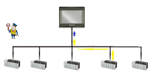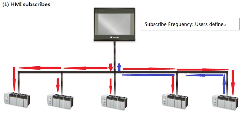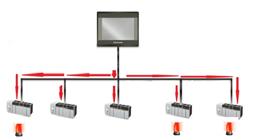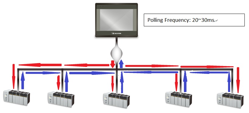 1. The HMI requests the data from devices (red line). Only three devices having data changed.