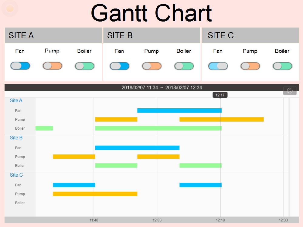 イベントやアラームの見える化をアップグレードするため、このたびWeintekの研究開発チームは、新しいオブジェクト:ガントチャートをリリースしました。