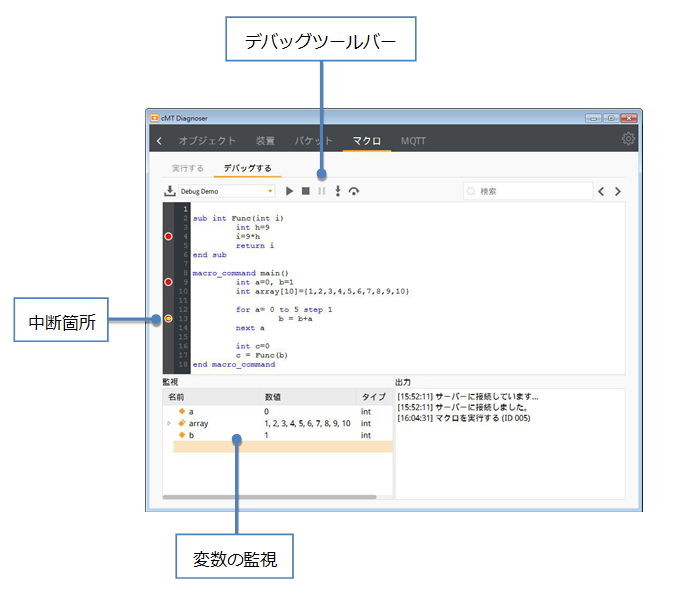 cMT診断器に新規追加したマクロデバッグツールは、迅速にマクロに存在する問題を探し出すことに役立ち、プロジェクトの作成時間を短縮します。