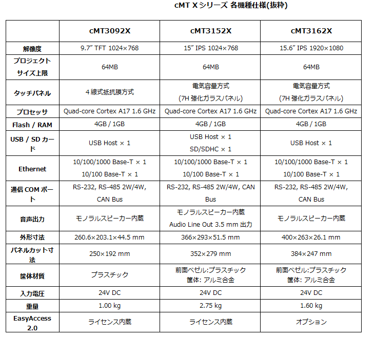 斬新なグレードアップ版cMT XシリーズHMI – cMT3092X / cMT3152X / cMT3162X