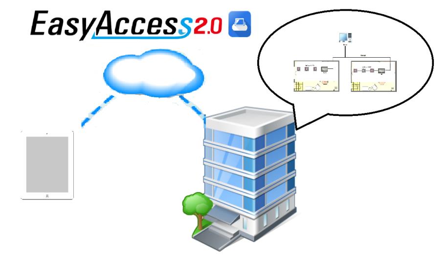 EasyAccess 2.0と合わせて使用すると、ユーザーがオフィスビル内にいなくても、スマートフォンまたはタブレットを通じ、照明、エアコンなどのBACnet MSTP装置に接続してコントロールすることができます。