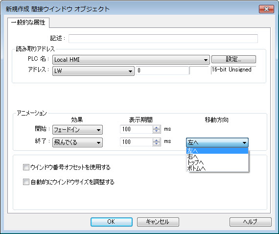 EasyBuilder Pro V5.07.01から、ファンクションキー、間接ウインドウ、直接ウインドウオブジェクトには、フェードイン、飛んでくる、浮かび上がるとのアニメーション効果が提供されます。