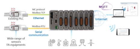 cMT-CTRL01に内蔵されたGatewayは産業用モノのインターネット(IIoT)での標準プロトコル:OPC UAとMQTTをサポートします。CODESYSの情報と接続しているPLC装置の情報をOPC UA或いはMQTTを通じてIIoTデータセンターにアップロードすることが可能です。