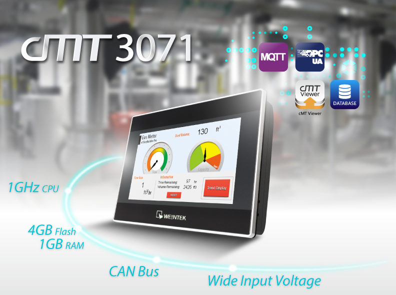 コンパクトで応用範囲が広く、価格も手頃な7インチHMIはいつもの人気商品です。ユーザーにより容易にcMTシリーズに触れ、cMTのパワフルな機能を利用してスマート工場を構築することを協力するため、Weintekはユーザーの要望を応じて、最新の全方位型の7インチHMI:cMT3071をリリースしました。