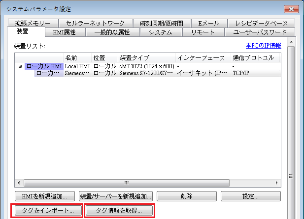 [タグ情報を取得]:EasyBuilder Proが直接にPLCからタグを取得するので、タグが取得できれば、HMIがPLCと通信できると示しています。よりまして、PLCが手元にあったら、本方法を 優先にしてタグをEasyBuilder Proプロジェクトにインポートしてください。