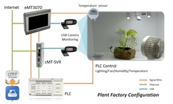 By connecting cMT-SVR with PLC, the cMT-SVR can receive data, which includes current temperature and compressor’s state, from PLC.