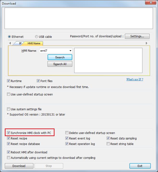 In the Download window in EasyBuilder Pro, a new option can be found: Synchronize HMI clock with PC. This option allows synchronizing HMI clock to the PC time when downloading a project.