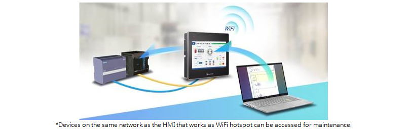 The WiFi hotspot allows smartphones or laptops to wirelessly connect to HMI, which is suitable for HMI monitoring and maintenance.