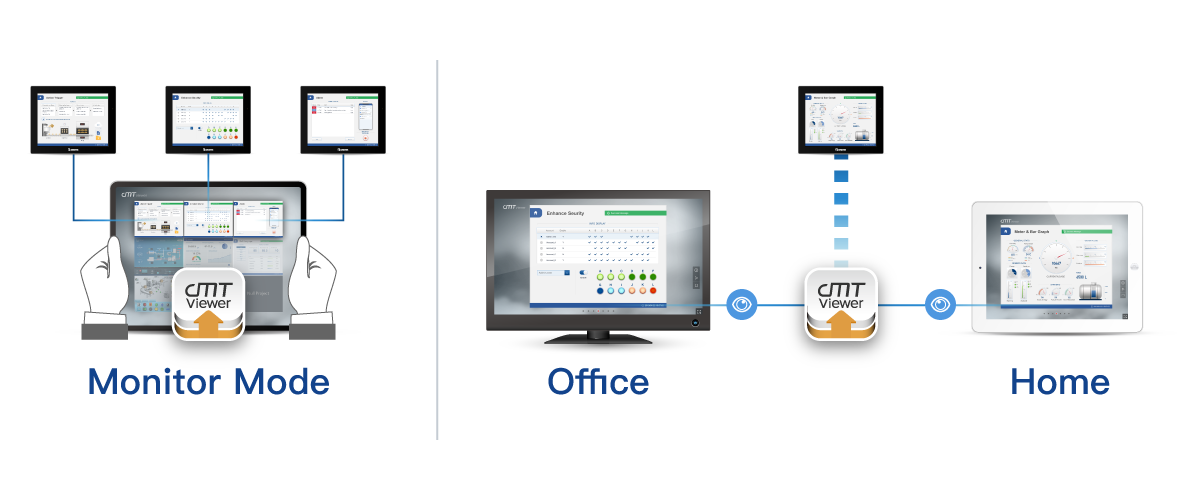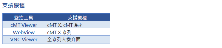 使用威綸科技的人機介面,除了直接在觸控螢幕上進行操作外,另外可使用多元監控工具進行行動監控。各式監控工具各有特色,適用於不同應用情境,但只要善用多元監控工具,不論是cMT Viewer、WebView、VNC Viewer其中的哪一種,都能一手掌握工業現場的設備狀態,用戶可以依據個別的需求挑選。