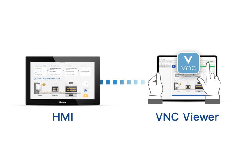 經典監控app。原先有使用 VNC的客戶,也能同樣使用VNC同步監控HMI畫面。