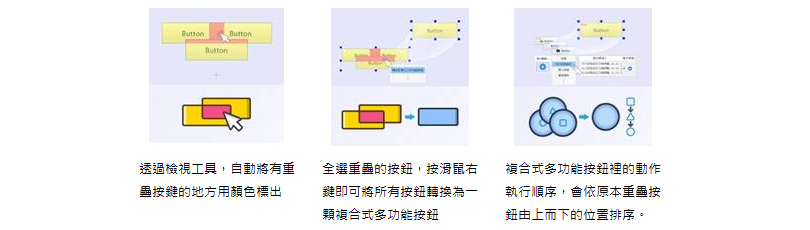 使用專屬工具,將多個重疊按鈕轉換為複合式多功能按鈕。操作程序如下:
