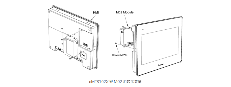 cMT3102X 為 10.1” 螢幕之 cMT X 進階型人機介面,不僅有完整的軟硬體功能支援,作為首款支援通訊擴充模組的 HMI,可另行搭配 M02 WiFi 擴充模組,即可輕鬆實現無線網路連線能力。