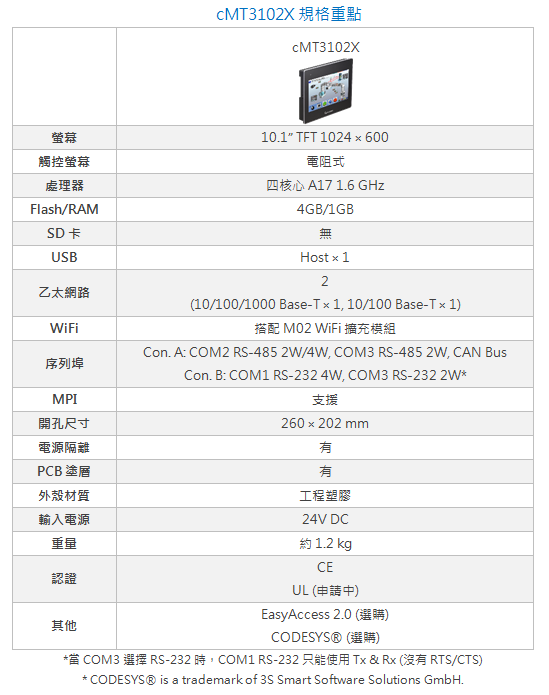 全新 10″ 進階型人機 cMT3102X – 可搭配 M02 WiFi 擴充模組