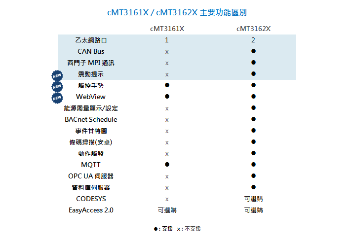 在獲得用戶讚譽有加的cMT3162X推出後,為滿足不同應用環境的需求,威綸科技以cMT3162X為基礎,保有cMT3162X的核心特點,持續推出cMT3161X。cMT3161X提供不同的市場定位,讓此系列人機有機會深入更多的應用場合。