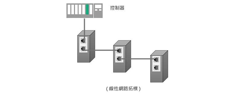 iR-ETN本身具有雙乙太網路口,除了星狀網路拓樸,還能直接串接多台iR-ETN形成EtherNet/IP線性網路拓樸,免安裝交換機,提供最大經濟效益。