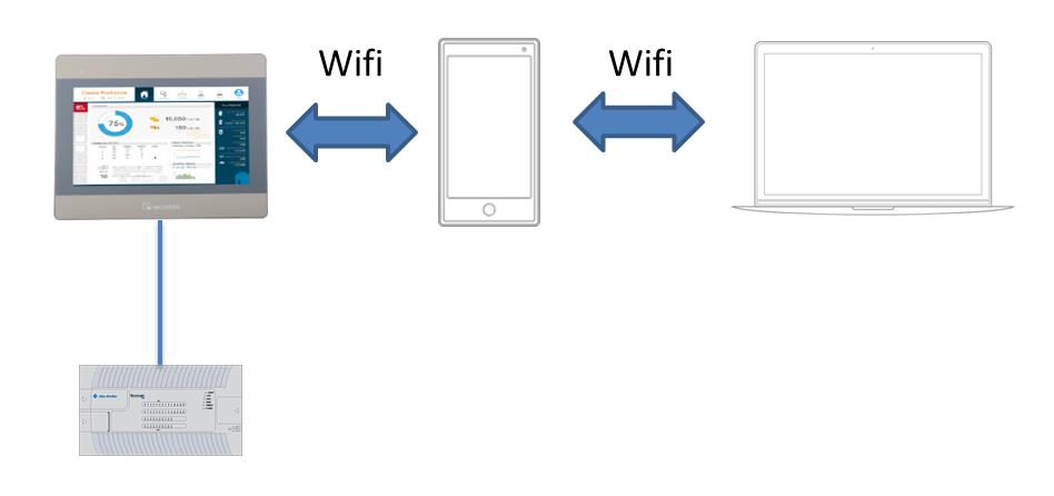 機器賣到客戶那之後去現場的維修人員只要打開手機分享無線基地台讓HMI連上EA2.0, PLC或HMI的設計工程師就可以在遠端操作。