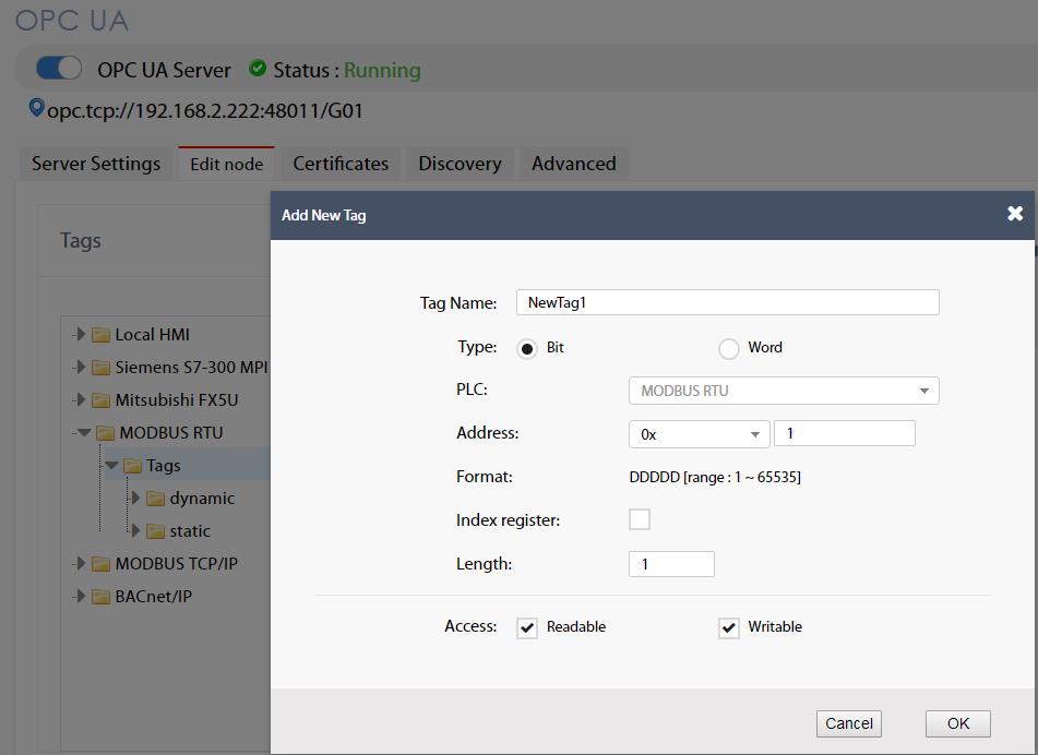 威綸的cMT Gateway系列現在開始支援在網頁上可編輯OPC UA伺服器的節點。