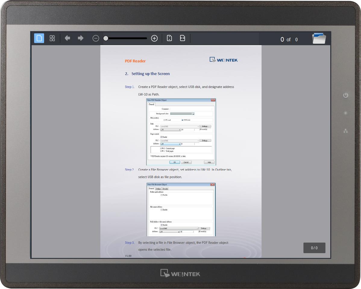 PDF Reader可讓使用者在HMI上閱讀PDF文件。