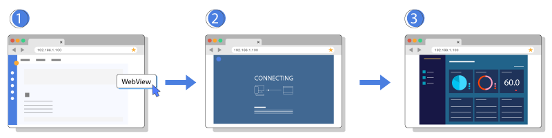 啟動WebView相當簡單:只要透過網頁瀏覽器連線到HMI的設定網頁中,點擊WebView按鈕,即可切換到HMI畫面進行各項操作。